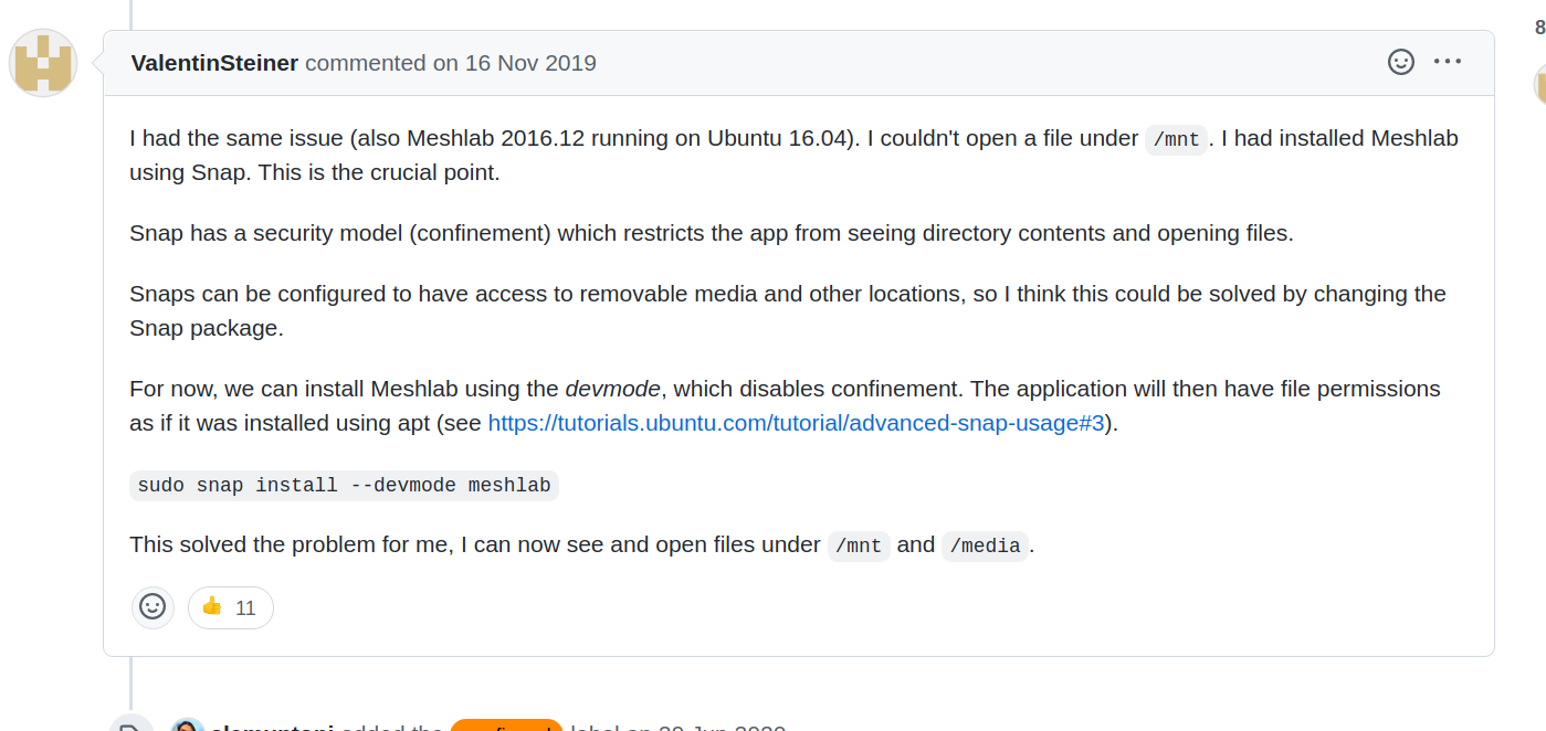 [Ubuntu - Snap] Can't open any file on external hard drive · Issue #466 · cnr-isti-vclab/meshlab