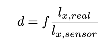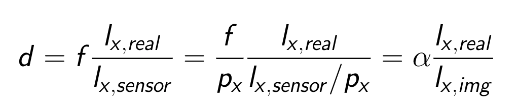 이제 바로 위의 식이 어떻게 (2)으로 바뀌는 지 알려면, alpha x,y 즉 focal length divided by per-pixel distance factor라는 조금 생소한 개념을 이해해야 한다. 여기서 per-pixel distance factor라는 카메라 기종마다 고유한 고정값으로(아마도..), pin-hole camera model을 가정할 때 camera의 image sensor 상에서의 피사체의 단위(mm)를 pixel값으로 바꿔주는 factor의 역수이다. 이 per-pxeil distance factor를 px라 하고 (2)의 equation을 다시 써보면 다음과 같다.